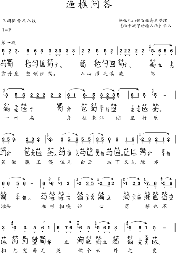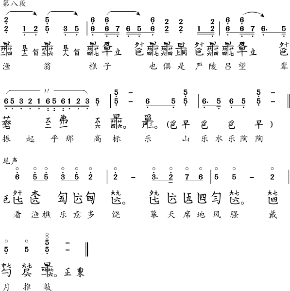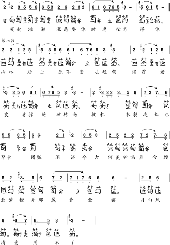本站曲谱使用古琴减字输入法录入。网页初次显示需要加载字体,如所显示减字为乱码,请确认浏览器环境是否满足要求,并耐心等待一分钟左右(视网络环境而定)。